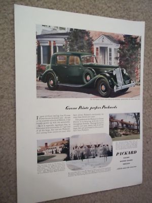 Title (ebay affiliate link): 1936 Ad Green Packard 12 Club Sedan Grosse Pointe Club