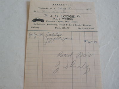 1937 J S LODGE BODY WORKS CADILAC PAINT JOB VINELAND NJ