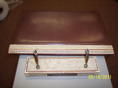 ANTIQUE BLOTTER LEATHER DESK SET INLAID MO PEARL Pen