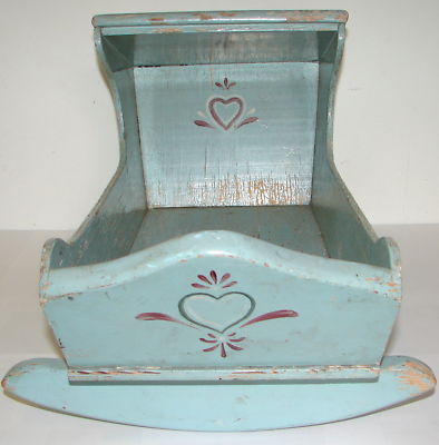 Title (ebay affiliate link): VINTAGE DOLL CRADLE PETER HUNT DECORATED HEART MOTIF