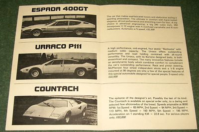 Lamborghini sales flyer 1974? Espada Urraco Countach