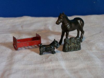 4 Antique Painted Lead Miniature Figures~Dog~Horse~++