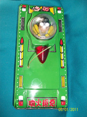 VINTAGE FRICTION SPARKING TIN FIRE TANK VEHICLE