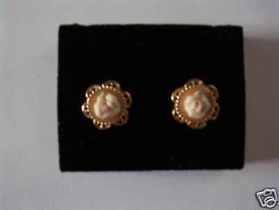 Title (ebay affiliate link): ANTIQUE VINTAGE PORCELAIN ROSE ENAMEL PIERCED EARRINGS
