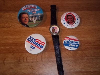 Title (ebay affiliate link): Bill Clinton, Hillary Political Buttons & Watch