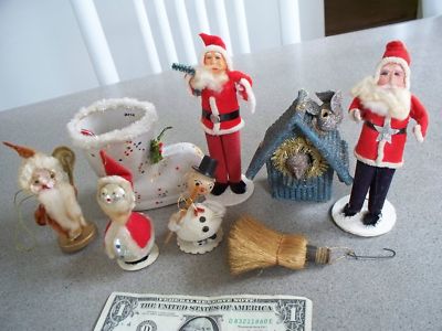 Title (ebay affiliate link): VTG XMAS DECORATIONS SANTAS W/PAPIER MACHE FACES! JAPAN