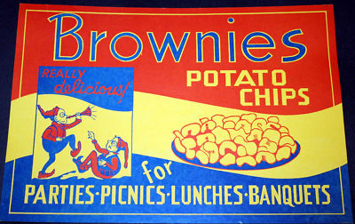 BROWNIES POTATO CHIPS. Advertising Sign. Cardboard