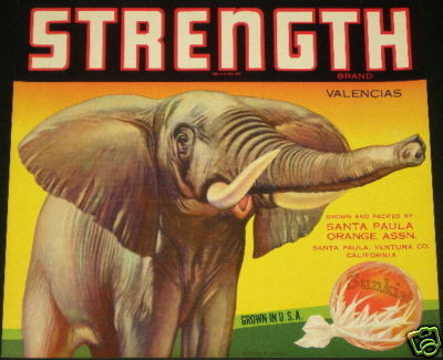 STRENGTH~ELEPHANT~RARE SANTA PAULA ORANGE CRATE LABEL