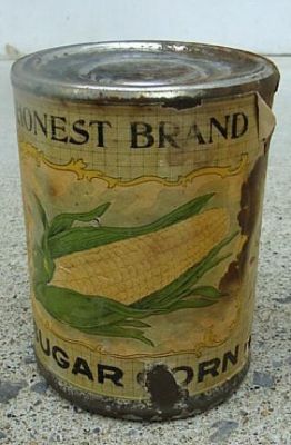 HONEST BRAND SUGAR CORN TIN-JOHN WATERS,MIDDLETOWN DE