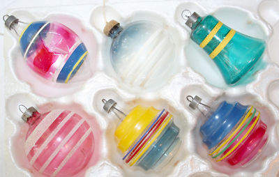 Six World War II Corning Glass Xmas Orn. Geometrics
