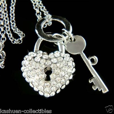 Title (ebay affiliate link): Crystal KEY TO MY HEART Puffed Padlock pendant Necklace