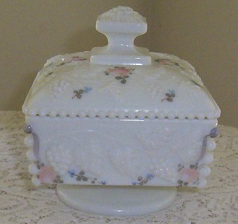 WESTMORELAND MILK GLASS HAND PAINTED CVRD CANDY DISH