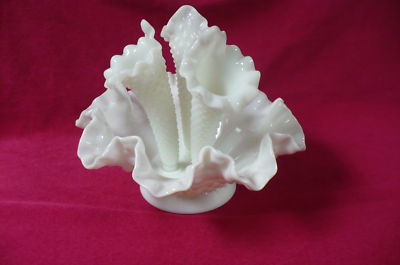 Fenton Hobnail Milkglass Epergne Bowl & 3 Trumpets EC