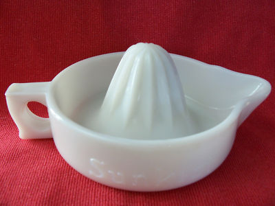 VINTAGE MILK GLASS JUICER~SUNKIST EMBOSSED ADVERTISING