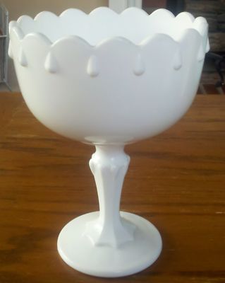 Tear Drop Milk Glass Tall Compote or Candy Dish