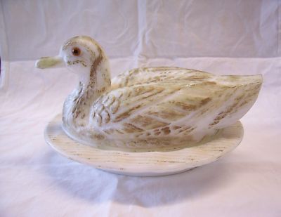 Westmoreland Nesting Duck on Nest Milk Glass Almond