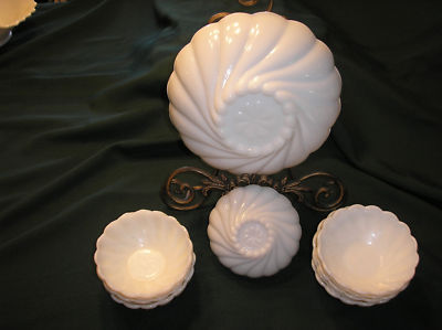 Hazel Atlas Milk Glass Serving Bowl & Berry Dishes