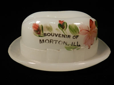 Antique Souvenir Milk Glass Hat from Morton IL.