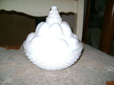 WESTMORELAND GLASS CHICK ON EGGPILE MILK WHITE-MARKED