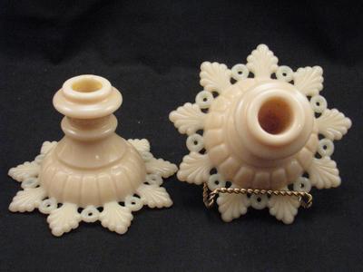 2 Westmoreland Almond Milk Glass Candlesticks~RingPetal