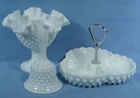 FENTON MILK GLASS HOBNAIL 3-PART RELISH, COMPOTE, BELL