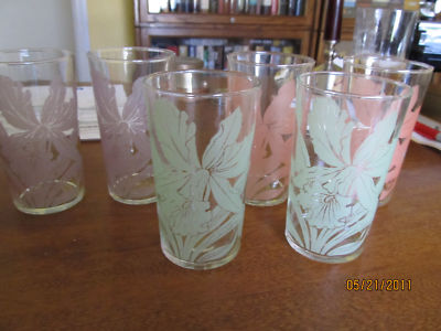6 Vintage Federal Glass ? 4-1/2" milk glasses Orchids