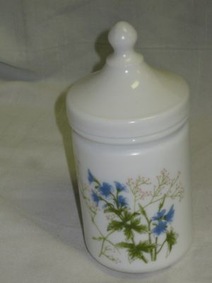 Nice Milk Glass With Flower Q-Tip Holder-Jar/Lid-France