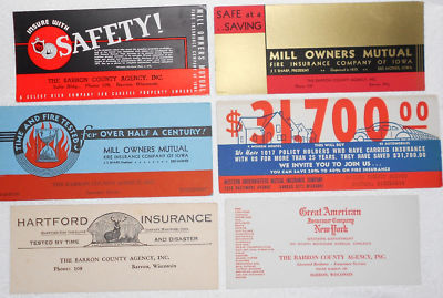 6 VINTAGE INK BLOTTER CARDS-VARIOUS INS. NOT USED