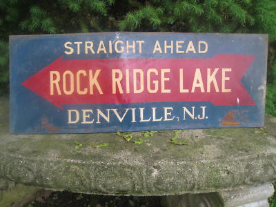 LAKE RESORT ADVERTISING DIRECTION TIN SIGN DENVILLE NJ