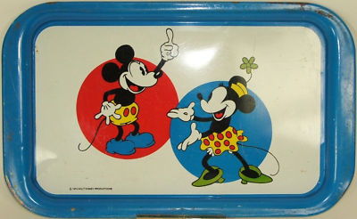 Title (ebay affiliate link): Vintage Disney Mickey Minnie Mouse Tin TV Tray 1974