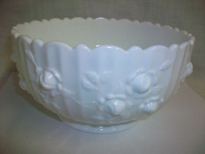 Beautiful Milk Glass Decorative Bowl w/ Embossed Roses