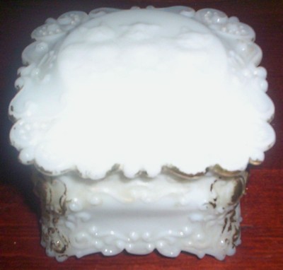 Victorian Milk Glass Vanity Covered Trinket Dish 3 Cats