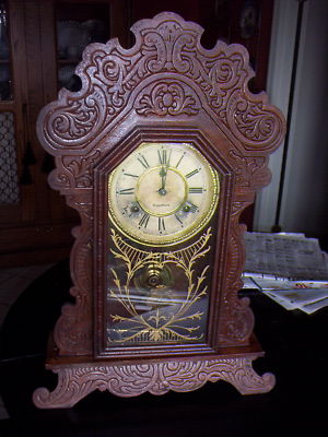 ANTIQUE WATERBURY GINGERBREAD KITCHEN CLOCK