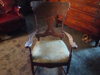 BEAUTIFUL ANTIQUE TIGER WOOD ROCKING CHAIR
