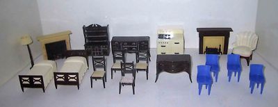 Title (ebay affiliate link): HUGE LOT Unique ANTIQUE RENWAL DOLLHOUSE Furniture