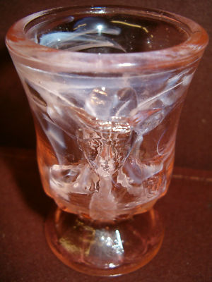 DEPRESSION PINK GLASS HOPALONG CASSIDY TOOTHPICK HOLDER