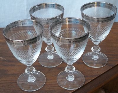 Title (ebay affiliate link): Set of 4 Depression Glass Wine Stems Etched Silver Rim