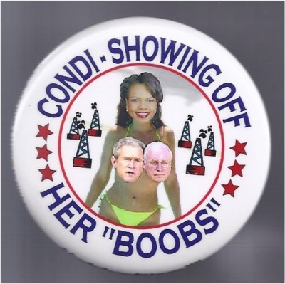 Title (ebay affiliate link): ANTI GEORGE W BUSH CONDI & HER BOOBS PINBACK BUTTON PIN