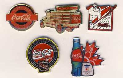 5 Coca Cola Lapel Pins Lot No.5