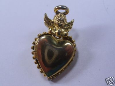 antique vintage angel locket tack pin gold toned metal