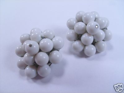 antique vintage white bead cluster Japan clip earrings
