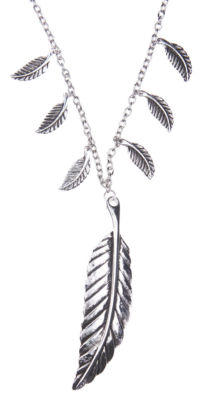 Title (ebay affiliate link): Long Silver Leaf Feather Antique Styl Pendant Necklace