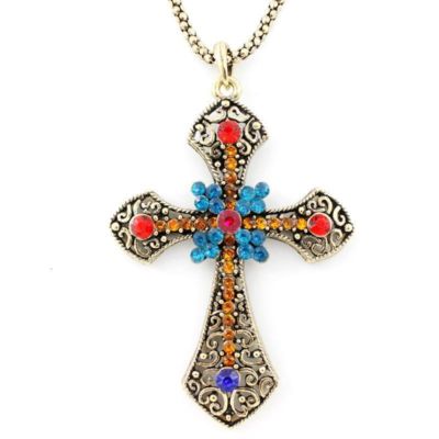 * VINTAGE Retro Antique Crystal CROSS Pendant NECKLACE