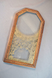 Antique Wood & Glass Clock Case Door w/Gold