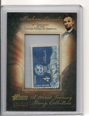 Title (ebay affiliate link): 2009 Abraham Lincoln Topps Heritage lincoln stamp /100