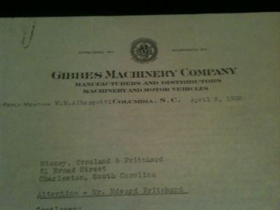 Title (ebay affiliate link): Gibbes Machinery Co. 1938 Letter Re: Faulty Packard