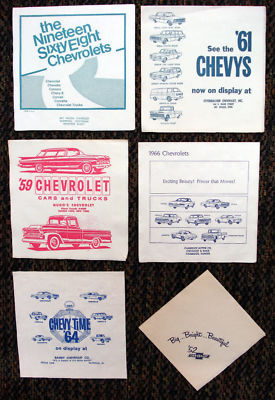 Title (ebay affiliate link): (6) different CHEVROLET NAPKINS 50'S & 60'S - UNUSED