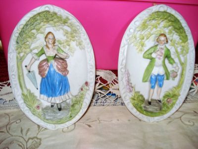 Title (ebay affiliate link): VTG 2OJ OCCUPIED JAPAN VICTORIAN LADY GENTLEMAN PLAQUES