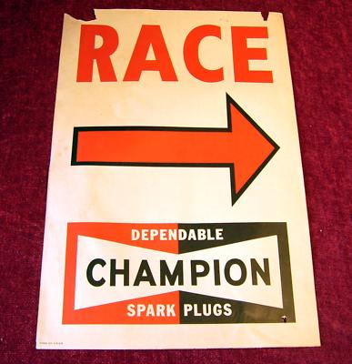 Vtg 1960s Champion Spark Plug RACE Sign Barrel Sticker