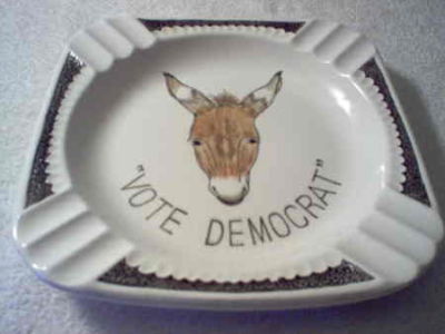 Title (ebay affiliate link): 1940-50's NORCREST VOTE DEMOCRAT ASH TRAY NICE! W/LABEL